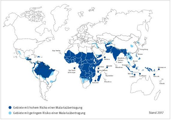 Malaria ist eine gefährliche Infektionskrankheit bei Reisen in Risikogebiete. Der Malaria-Erreger wird durch eine bestimmte Mückenart, die Anopheles, übertragen. Unbehandelt können einige Malariaformen, insbesondere die Malaria tropica, schwere Organkomplikationen verursachen und auch zum Tode führen.